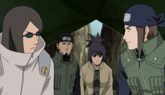 Di lain tempat, Tobi sedang bertarung dengan kelompok tujuh dan delapan. Shino mengambil alih penyerangan terhadap Tobi. Tobi dikerumuni dengan ribuan serangga, tetapi setelah beberapa saat ia menghilang tanpa jejak. Lalu Hinata menemukannya di atas ranting pohon dengan Byakugan.