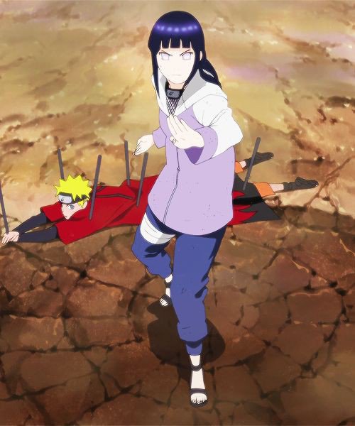 Kesal karena Naruto akan kalah Hinata turun dan melindungi Naruto akan tetapi Hinata langsung sekarat oleh Pain, sebelumnya Hinata mengungkapkan perasaanya kepada Naruto.
