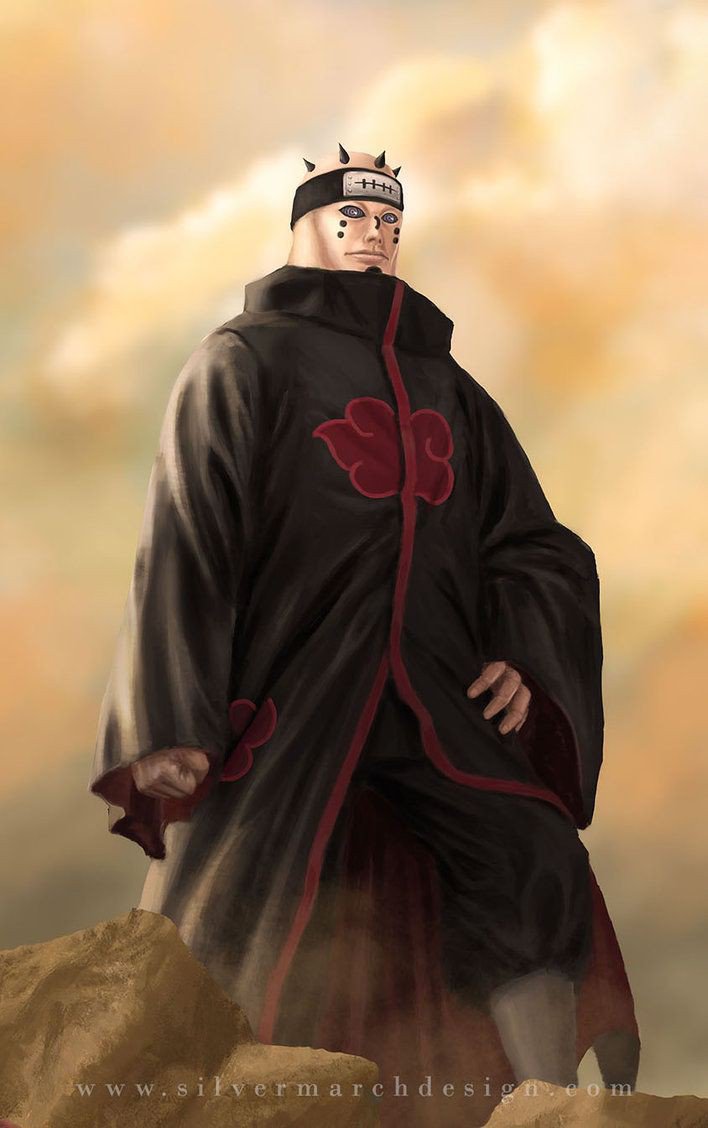 Kemarahan Nagato pada Hanzou tak terbendung, dia mengeluarkan kekuatan dari mata ‘Rinnegan’ nya memanggil Kuchiyose: ‘Gedou Mazou‘. Lalu muncul ah sebuah patung besar (yang kini menjadi alat penyimpanan Bijuu oleh Akatsuki) yang melahap pasukan Amegakure milik Hanzou dan Anbu Konoha. Dan Hanzou pun berhasil kabur dari serangan Nagato,dan itulah jawaban yang Nagato berikan pada Naruto.