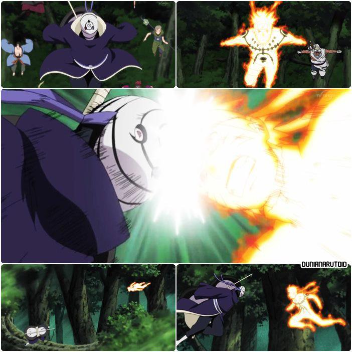Naruto yang mengetahui Hinata diserang, marah hingga mengeluarkan chakra Kyuubi hingga ekor 6.