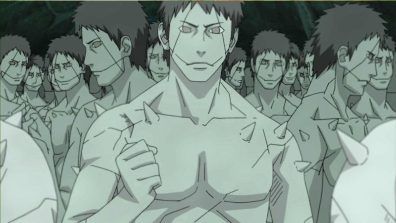 Danzou dihadang oleh Sasukedan di luar dugaan ternyata di tangan kanan Danzou tertanam banyak mata Sharinganyang memberikan kekuatan tak terduga pada Danzou, pertarungan Genjutsu pun terjadi. Sasuke yang menggunakan Susano’o langsung menggenggam Danzou di tangannya dan menghancurkan tubuhnya, ternyata Danzou sudah ada di belakang Sasuke. Jutsu yang digunakan Danzou sangat aneh, bahkan Tobi yang memantau pertarungan itu kaget dengan jutsu yang dipakai Danzou.
