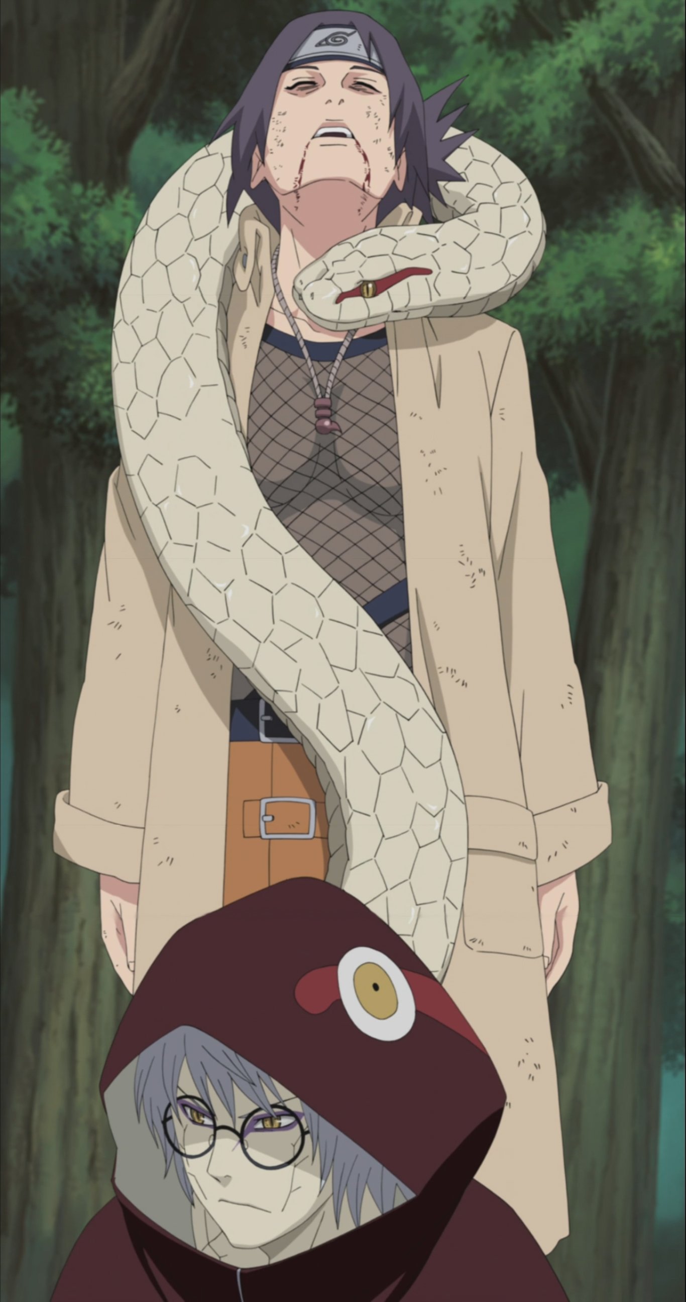 Di dekat persembunyian Akatsuki, Tim Anko ditangkap oleh Kabuto.