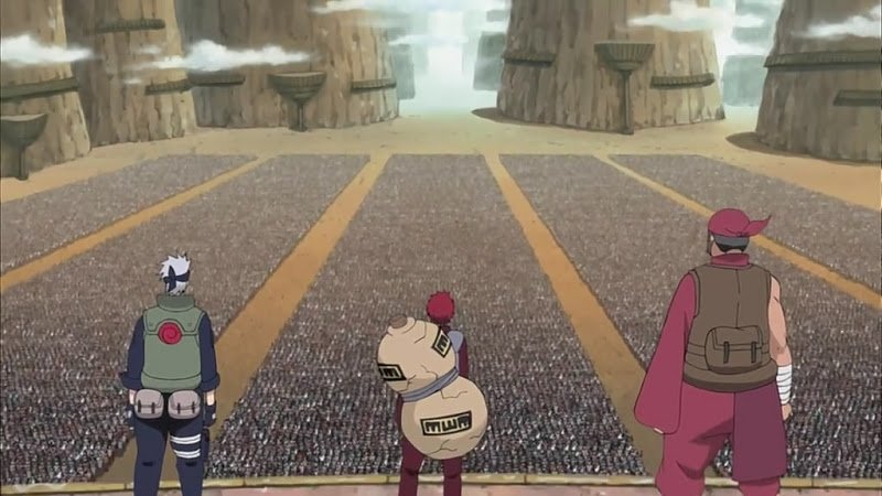 Di desa Kumogakure, beberapa shinobi berkelahi karena permusuhan mereka yang sudah dari dulu terjadi namun dengan tegas Gaara memberikan pidato bahwa shinobi harus menghapus kebencian mereka dan menjadi teman seperti Naruto dan membuat para shinobi sadar dan kemudian Shinobi Aliansi pergi dari markas untuk berperang.